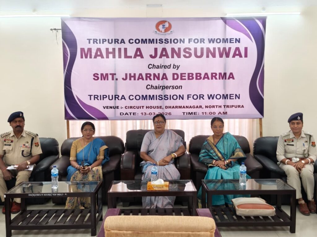 Dharmanagar, Tripura, 13th of March, 2026 : The National Commission for Women, a “Mahila Jansunwai” (Women’s Public Hearing) programme was held on Friday at the Dharmanagar Circuit House in North Tripura district, organized by the Tripura State Commission for Women. The programme in North Tripura was conducted after similar hearings were organized across seven districts of the state.