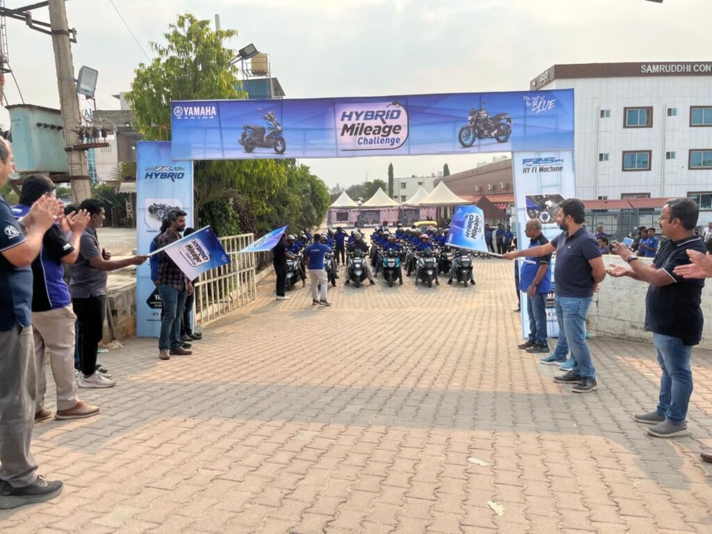 Bengaluru, Karnataka, 30th of March 202 : India Yamaha Motor (IYM) Pvt. Ltd. hosted the Mega Mileage Challenge in Bangalore for the FZ-S Fi Hybrid motorcycle and 125cc Fi Hybrid Scooters – Fascino & RayZR. The event aimed to educate customers about the impressive fuel efficiency delivered by the Hybrid Technology featuring Smart Motor Generator (SMG) system and its benefits. Organized in collaboration with authorized dealerships – Eye Automobiles, Whitefield Yamaha, Garuda Motorcycles, Vinayak Motors, and Panache Enterprises – the challenge witnessed enthusiastic participation from Yamaha customers, and their family members.